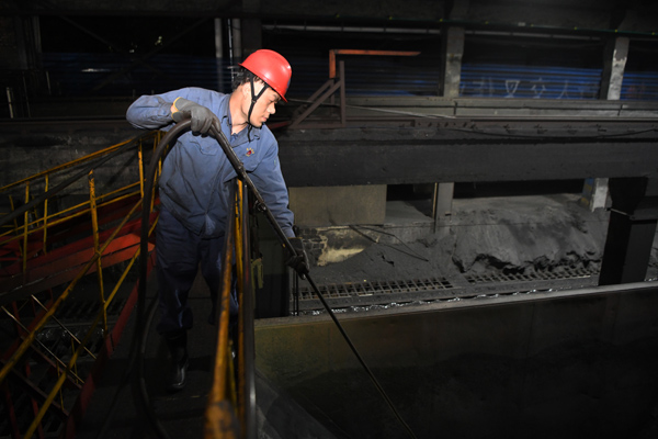 “今天還好,煤不潮、地不濕,卸的快些,前天下雨可費力了,一個班下來胳膊、腿,酸麻、發脹?!毖b卸工張勇2019年來到裝卸崗位,雖然資歷淺,但干起活來一點也不差,只見他弓著腰,掄起鐵鏟麻利的把車道旁的積煤鏟進倉內,還不時蹲下將煤堆里的雜物一一挑出來。他擦了一把汗,回頭指了指北面受煤坑一道工作面,笑著說:“旁邊汽運煤場地建成以來,疏通受煤坑篦子、清理道心積煤也是我們的活,我們不怕累,只有廠里有效益,職工才能有收益?!?/p>