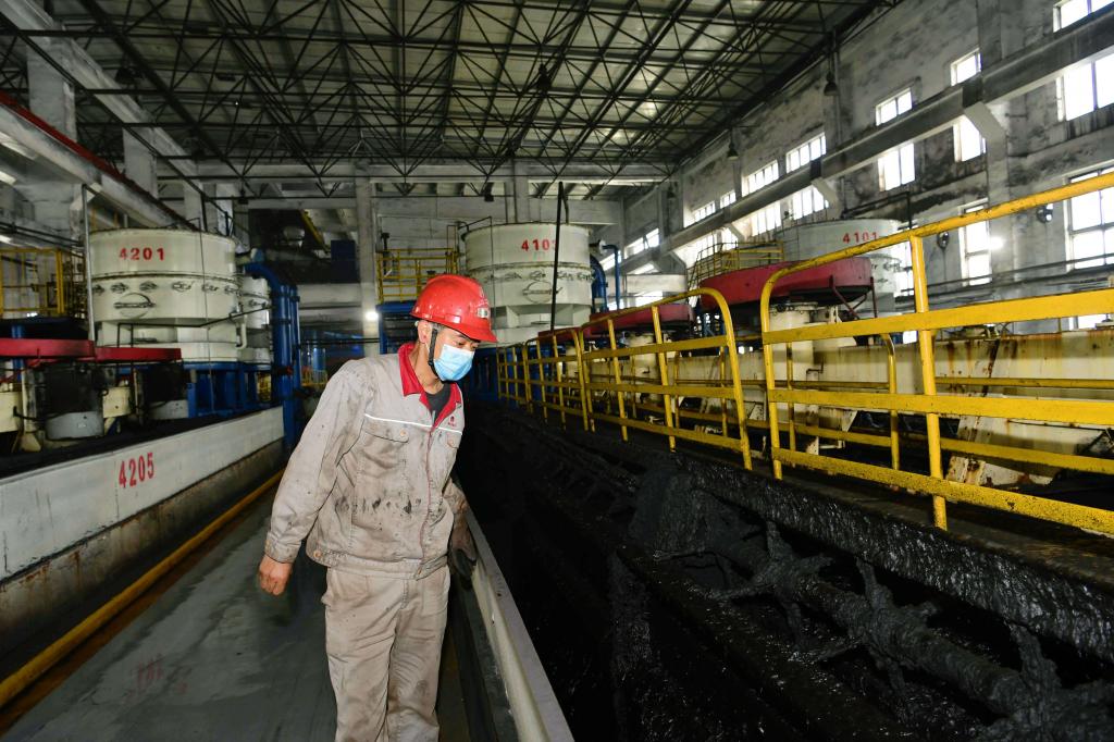 該廠西區選煤車間職工田永正在浮選生產現場檢查浮選精礦情況。他早上接班后,根據生產調度通知按時間點開車,進行安全確認,接到啟車信號后等待集控啟車,啟車加煤、加浮選藥劑和絮凝劑、檢查浮選機刮料和尾礦是否正常、檢查設備是否正常,馬不停蹄地忙碌著一個班。他說,堅守是一種“站好每一班崗”的責任意識;堅守是一種“舍小家為大家”的奉獻精神。