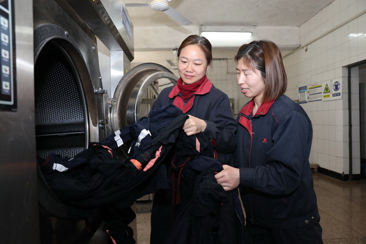 物業公司女工丁翠玲、趙文芳清洗工作服