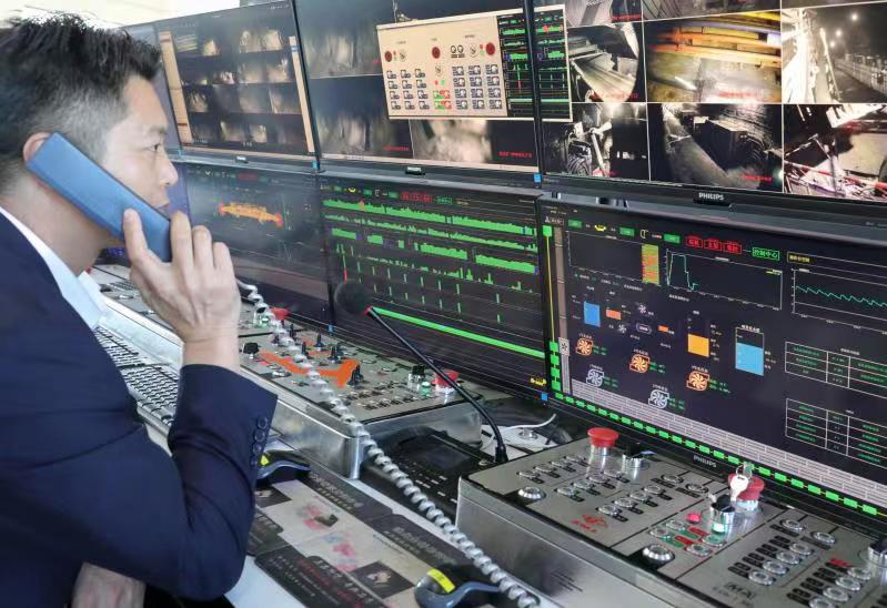 “我是去年10月份從井下機電檢修工轉(zhuǎn)行到礦地面綜采智能化控制中心當操作員的。”張兵介紹道,信湖礦818工作面目前已建成了液壓支架電液控、智能控制、智能集中供液、采煤機控制、運輸設(shè)備控制、視頻監(jiān)控等六大系統(tǒng),實現(xiàn)了遠程“一鍵啟停”、自動記憶割煤、故障自診斷、液壓支架自動跟機移架、工作面人員高精度感知與定位等功能。井下通過每隔50米布置一臺基站,實現(xiàn)了移動目標、控制信息、監(jiān)測信息、視頻信息等穩(wěn)定可靠傳輸。以前該綜采面2名煤機司機、6名移架工共8人的活,現(xiàn)在1名地面遠程控制操作員、3名安全巡視員共4人即可完成。