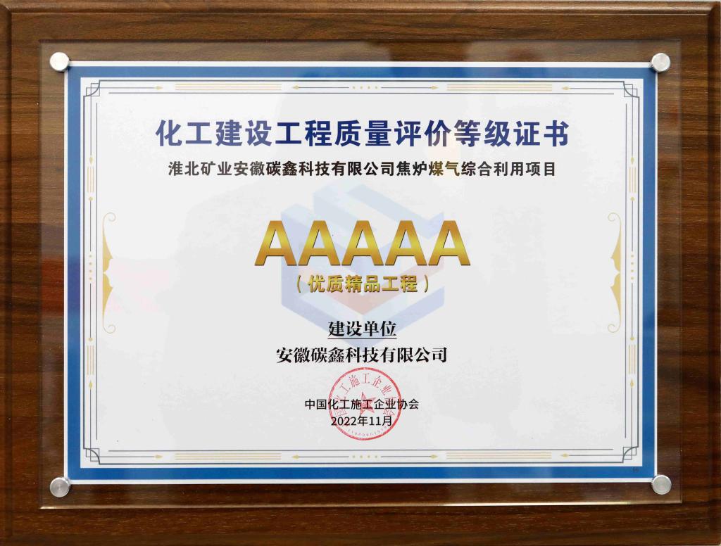 近日,2022年化工建設(shè)工程質(zhì)量評價結(jié)果出爐,安徽碳鑫科技有限公司焦?fàn)t煤氣綜合利用項目獲評2022年全國化工行業(yè)工程質(zhì)量建設(shè)的最高榮譽(yù)——5A級優(yōu)質(zhì)精品工程。