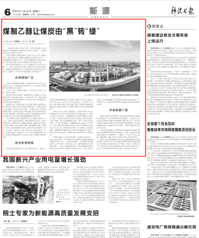 “煤制乙醇在三方面優(yōu)勢(shì)明顯?!敝炖诮o記者分析,一是生產(chǎn)成本更低。與傳統(tǒng)的生物乙醇相比,煤制乙醇每噸可降低成本約30%。二是原料來(lái)源廣。我國(guó)煤炭資源儲(chǔ)量豐富、分布面積廣、煤種齊全,可為乙醇提取提供充足的原料保障。三是生產(chǎn)過(guò)程綠色環(huán)保。例如,碳鑫科技采用的核心設(shè)備“神寧爐”碳轉(zhuǎn)化率達(dá)98.5%以上,高于其他氣化技術(shù),在廢渣殘?zhí)?、尾氣排放等方面的指?biāo)明顯優(yōu)于行業(yè)平均水平。資源利用率得到有效提高,實(shí)現(xiàn)煤炭清潔高效利用。