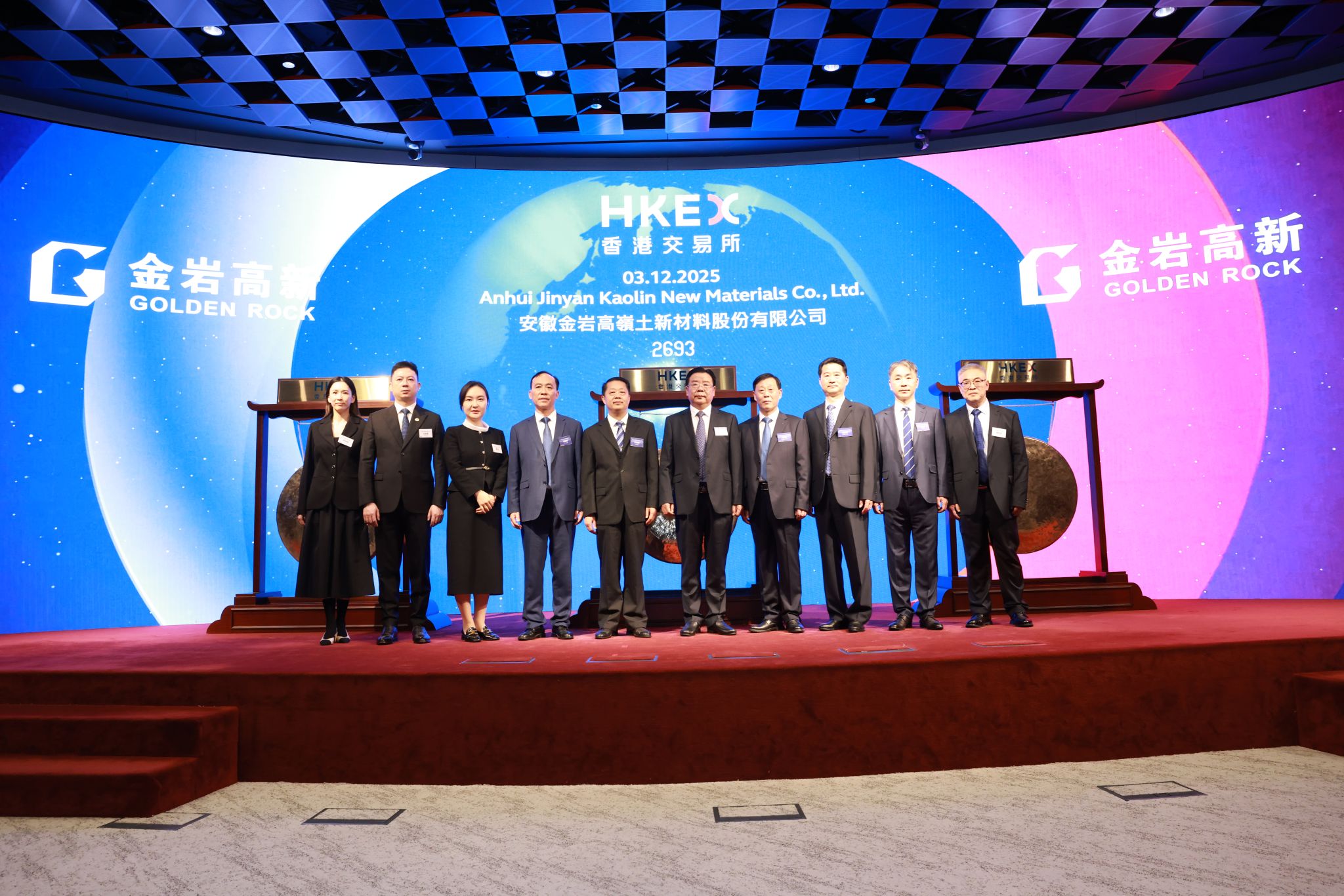 12月3日上午,安徽金巖高嶺土新材料股份有限公司(證券簡稱“金巖高嶺新材”,股份代號:02693.HK)在香港聯合交易所主板成功掛牌上市。此次登陸國際資本市場,不僅是該公司深化國有企業改革、提升治理效能的重要里程碑,更標志著其在高質量發展征程中邁出了關鍵一步。作為控股股東,淮北礦業集團公司至此已擁有3家上市子公司,而金巖高嶺新材則成為集團旗下首家于港交所掛牌的企業,具有特殊的戰略意義。