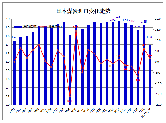 據(jù)日本財務省(Ministry of Finance Japan)發(fā)布的海關商品進出口貿(mào)易統(tǒng)計數(shù)據(jù)顯示,2022年1-8月,日本煤炭進口量累計為1.38億噸,比上年同期增加203.0萬噸,同比增長1.5%。其中,9月份煤炭進口1491.9萬噸,同比減少8.9%,環(huán)比下降14.0%。
